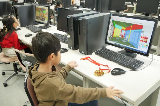 - 内容:スケッチアップというソフトを使ってコンピュータ画面上で3Dの家を作ります。VRゴーグルをかぶって仮想体験(かそうたいけん)もできます。